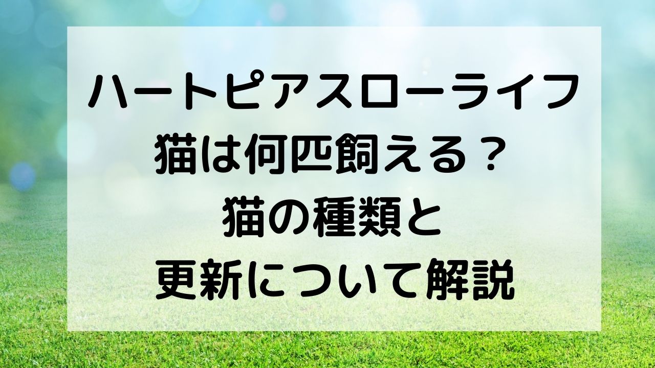 本記事では、ハートピアスローライフ猫の最大飼育数や解放条件、飼育枠の増やし方を基本から整理しています。