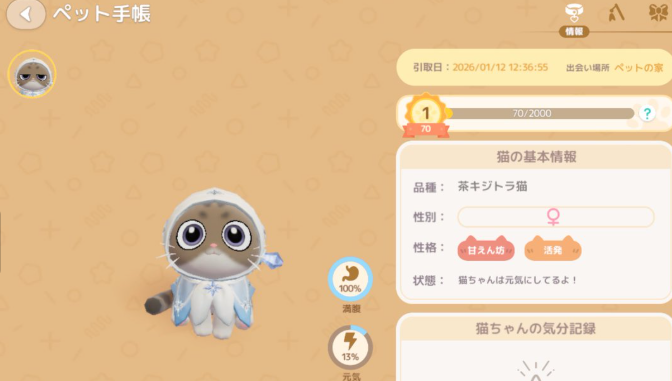 さらに性格もランダムで、甘えん坊な猫もいれば、少しクールな反応を見せる猫もいます。